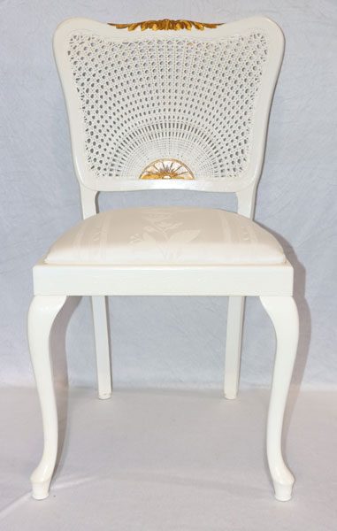 Lot 349: Holzstuhl, weiß, Rückenlehne mit Flechteinlage, Sitz gepolstert...