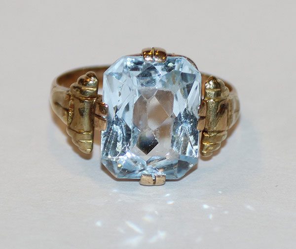 Lot 39: 8 k Gelbgold Ring mit Aquamarien ?, 3,9 gr., Gr. 53