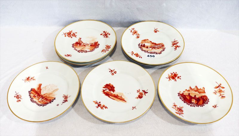 Lot 456: 7 Seltmann Weiden Teller mit Hausmalerei von Lexl i/LB. Amie...