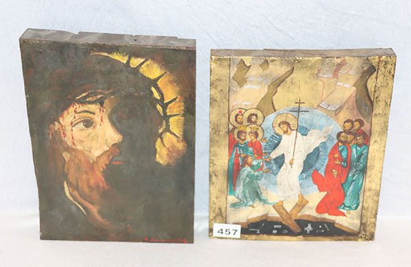 Lot 457: 2 Holzbilder im Ikonenstil, Auferstehung Christi und Jesus Christi...