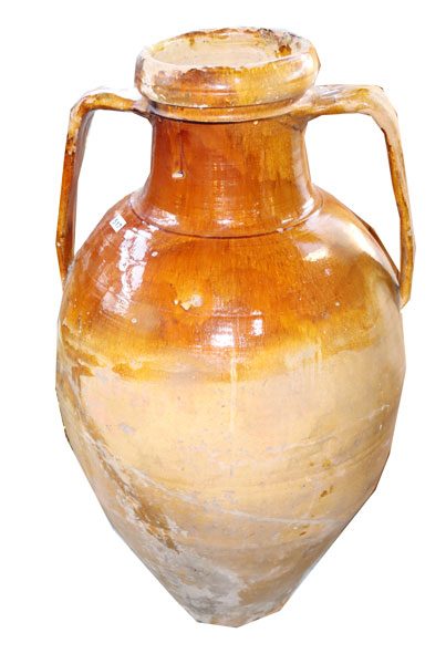 Lot 517: Weinamphore, Ton gebrannt, im oberen Drittel glasiert, H 112...