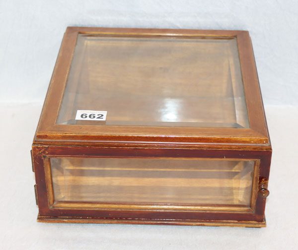 Lot 662: Tischvitrine, Holz, verglast mit Facettenschliff, vorne zum...