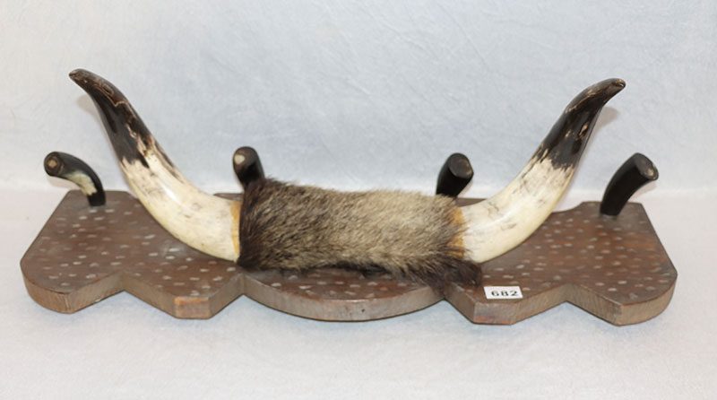 Lot 682: Holzgarderobe mit Büffelhorn, L 75 cm, B 24 cm, Gebrauchsspuren
