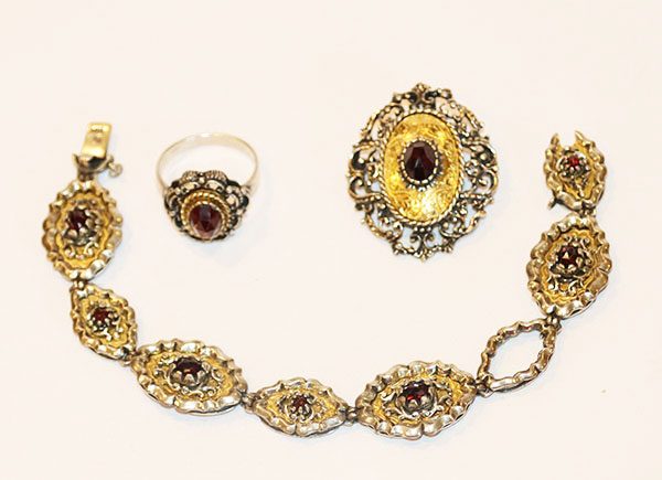 Lot 78: Trachtenschmuck-Konvolut: Ring, Gr. 59, Brosche, 4 cm x 3 cm,...