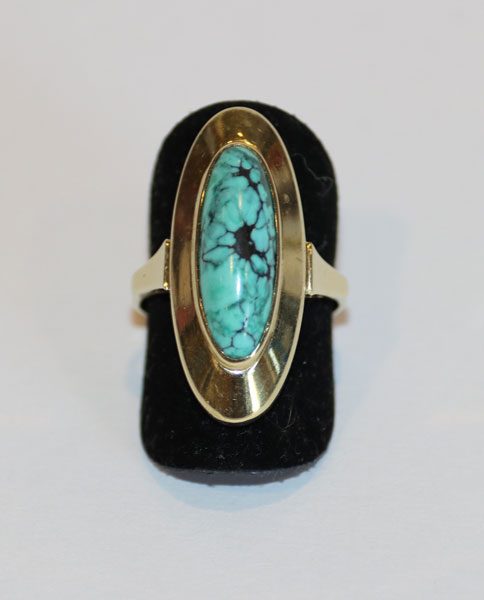 Lot 89: 14 k Gelbgold Ring mit länglichem Türkis, 5,7 gr., Gr. 56