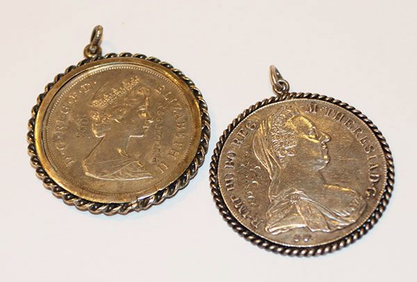Lot 97: 2 gefaßte Münzen, Maria Theresien Taler und Englischer Crown,...